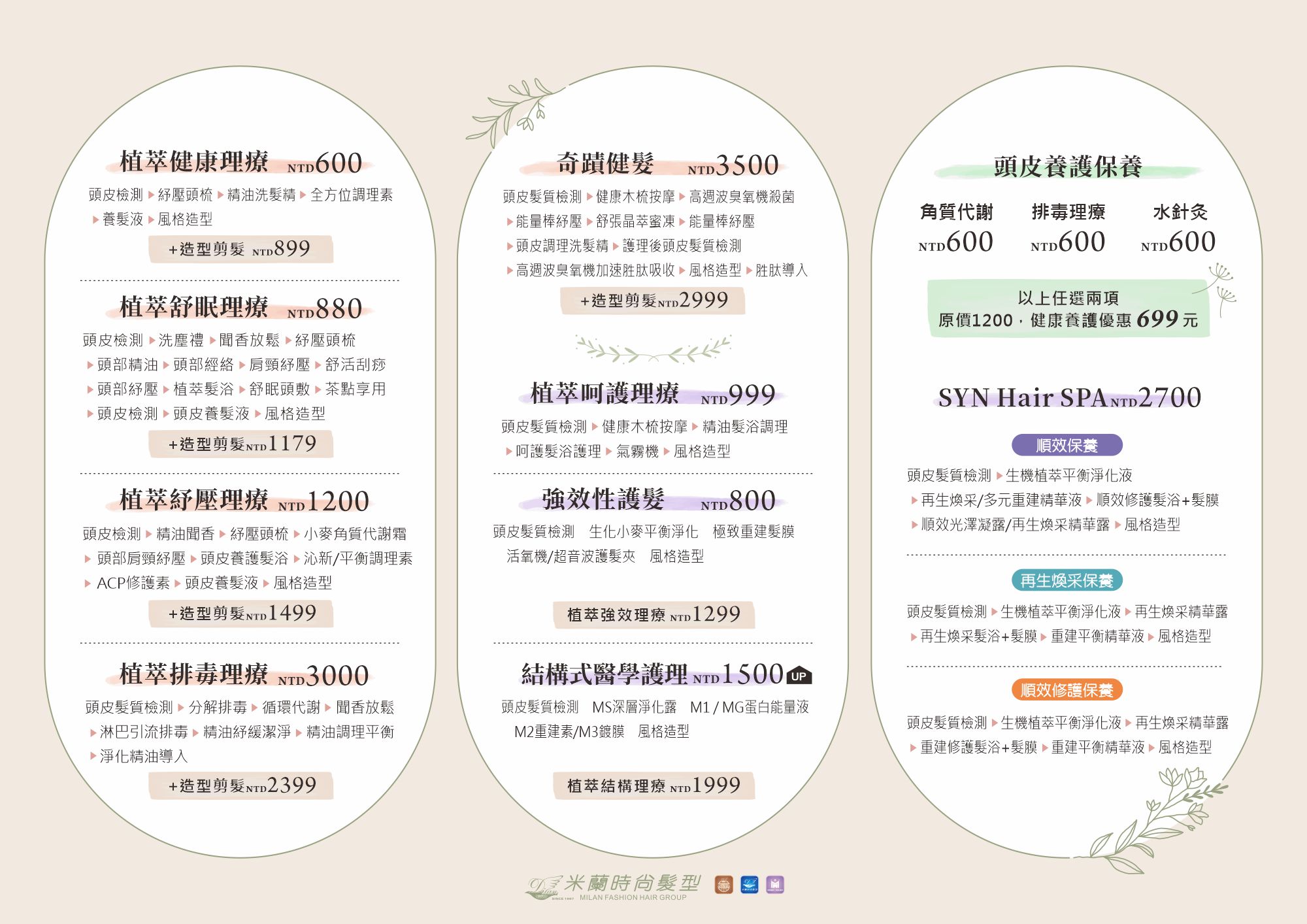 台南【金華店】【新天地店】、【夜間沙龍】不適用以下流程與價位。