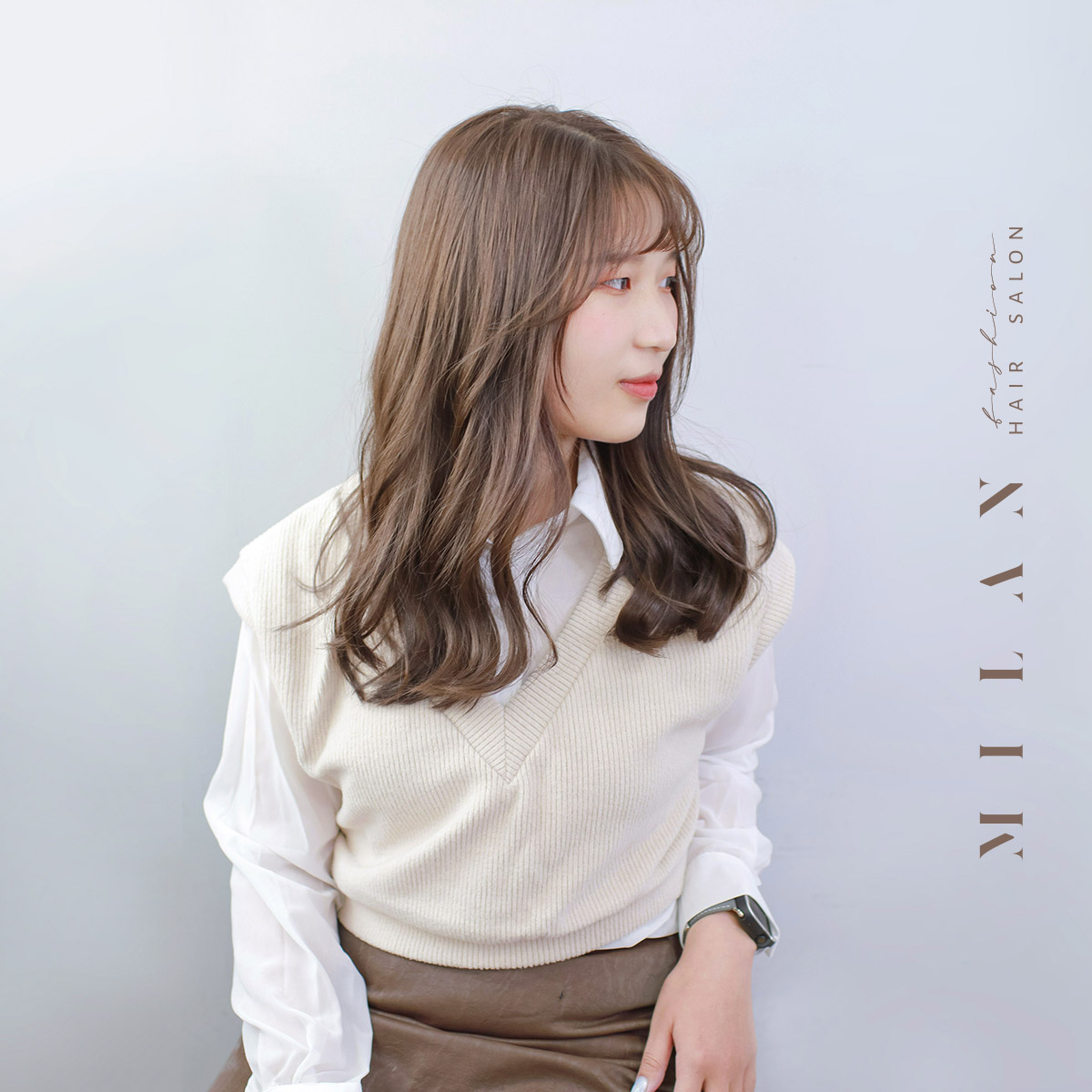 帶一點柔霧灰調的奶茶色,使得整體看起來乾淨,又不會太甜膩,是奶茶系列中最耐看的髮色!