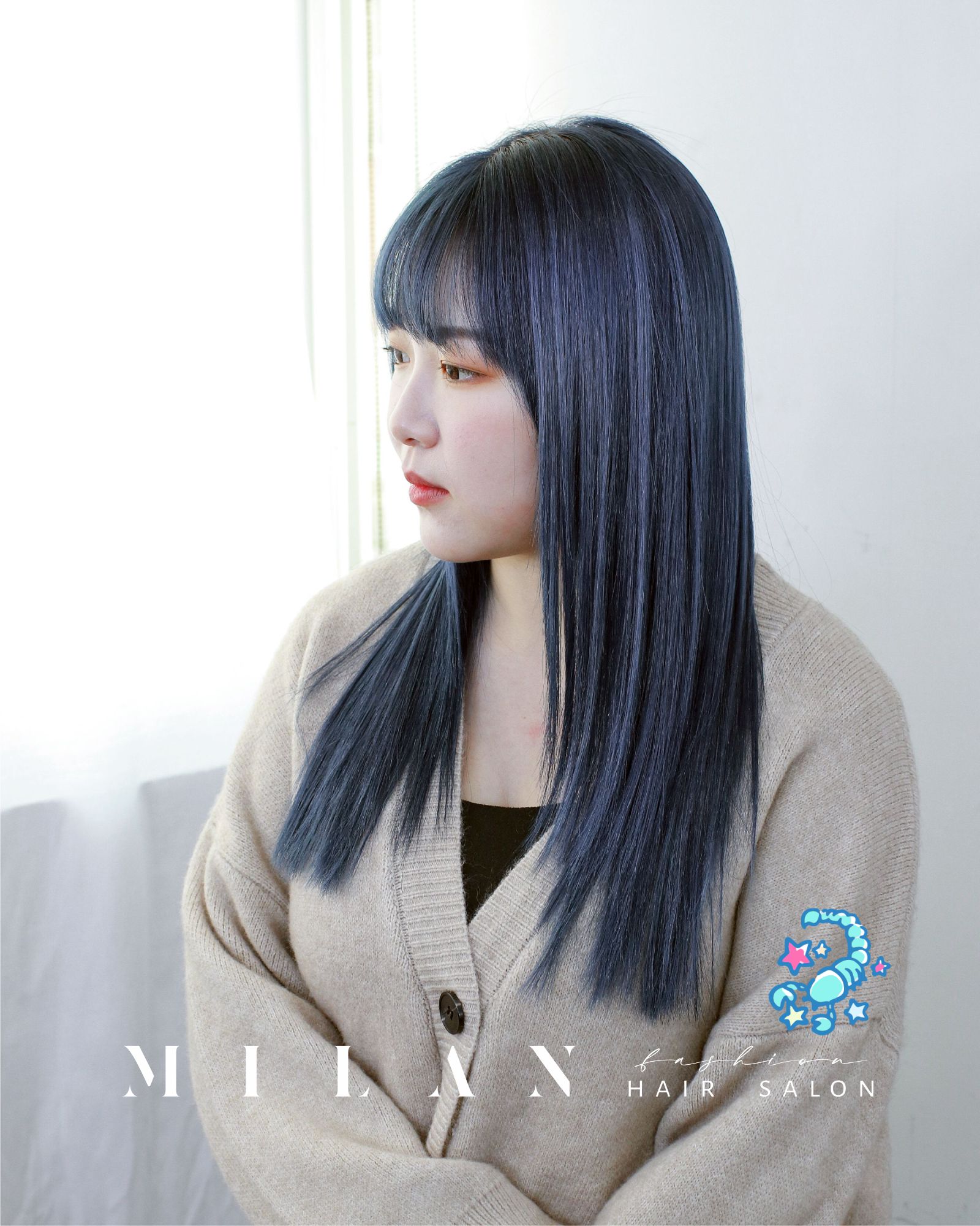 黑髮中若隱若現的藍色,能強調天蠍獨特的個人氣場,讓你的魅力在無形中爆發。