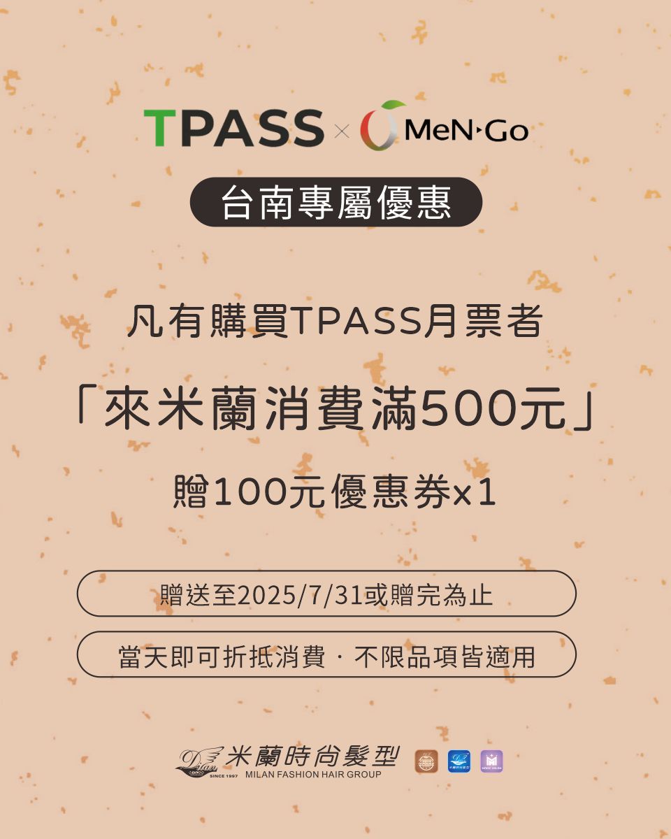 【台南限定】憑TPASS消費滿額贈百元優惠券